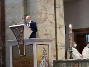Eccellenza reverendissima, anche a nome dei Superiori generali degli altri nostri Istituti, P. Jean Claude Nzembele qui presente, Halina Lazarek, in Polonia, Don Fabrizio M. Zambuto e Don Giuseppe Giammusso, impediti di essere qui a causa del Covid, ringrazio per la sua presenza in mezzo a noi a presiedere questa Celebrazione, vero ringraziamento al Padre del Figlio nello Spirito Santo, nel giorno del 100° compleanno del nostro Padre fondatore, don Domenico Labellarte. Desidero, nello stesso tempo, ringraziare quanti, partecipando a questa Celebrazione, ci hanno onorato, esprimendo l’affetto e la stima nei confronti del nostro Padre: le Autorità civili nella persona del Sindaco di Valenzano, Dott. Giampaolo Romanazzi e di San Giovanni Rotondo, Prof. Michele Crisetti, Il Padre Guardiano, P. Carlo Laborde, il Padre Rettore, P. Francesco Di Leo e tutti i Padri della Fraternità Cappuccina, i medici e operatori sanitari qui presenti, alcuni rappresentanti del “Gruppo di Preghiera di Padre Pio” di Valenzano e di San Giovanni Rotondo, tutti i presenti e coloro che partecipano dalle loro case tramite “Padre Pio TV”. In modo speciale vorrei ringraziare alcuni Vescovi e il Rettore dell’Almo Collegio Capranica che insieme agli auguri trasmessi hanno assicurato la loro vicinanza nella preghiera.